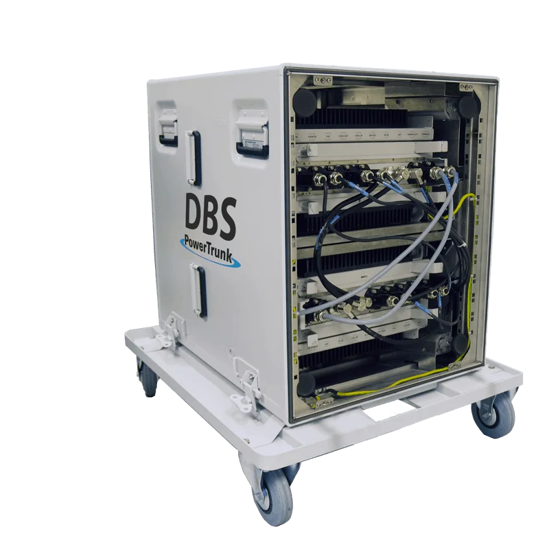 The DBS installation cost is reduced because it is ready to operate outdoors under the harshest weather conditions and does not need a shelter, requiring only an antenna mast and a link to the PowerTrunk-T System Control Node (SCN). Its weight has also been taken into account in the design, so that it can be moved by four persons.